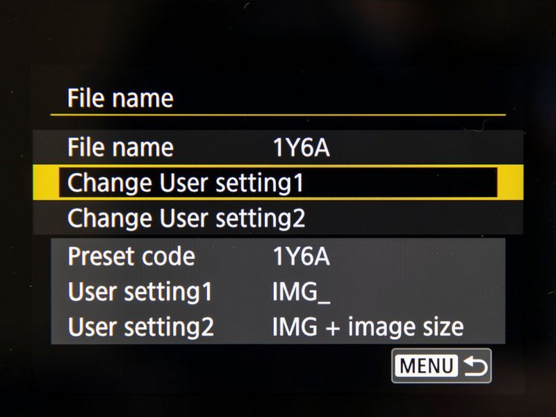 EOS professional digital cameras use a four-character camera code as the prefix to the file name. This code is unique to the individual camera and is preset by Canon during manufacture, but with more recent cameras – the EOS 5D Mark IV, the EOS-1 D series, and the EOS R5 – it can be customised by the photographer, and changed as frequently as you wish. So you might, for example, wish to use a custom code for a particular shoot, such as 21NY for your 2021 shoot in New York. See your camera manual for details. Note that you cannot set an underscore as the first character, because that is reserved for shots taken using Adobe RGB, as noted above.